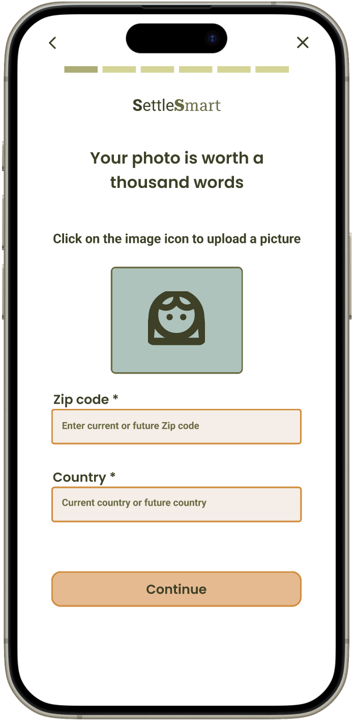 Sofia, recently relocated to Berlin, wants to access SettleSmart’s community and essential services. She begins by clicking “Sign In” and is prompted to create an account. She enters her email, sets a password, and provides location details like country and zip code. After verifying her information, she selects preferences for services such as home setup, move preparation, and finding local resources. Once her account is confirmed, she gains access to SettleSmart’s tailored support, helping her navigate life in a new country.